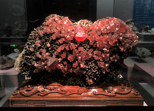 比如一,兩位老友分別專程前來“湖南省地質(zhì)博物館”,一位是湖南衛(wèi)視的領(lǐng)導(dǎo),一位是廣東來的大咖,他們之前并不知道對(duì)方會(huì)來,卻演戲似的,穿得一紅一綠,來觀賞這綠水晶之上的紅螢石。