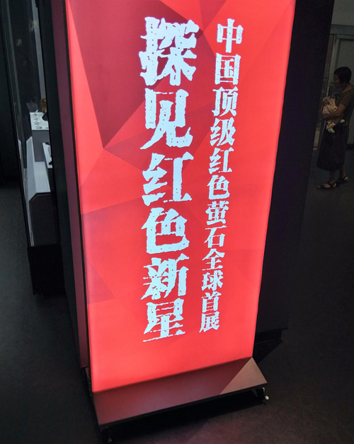 二,8月上旬,黃館長和我一起規(guī)劃國慶寶石展活動(dòng),他堅(jiān)持說,要辦就要以紅色寶石為主題,迎國慶嘛,喜慶,要紅紅火火。他話音剛落,不到一個(gè)星期,8月15日,內(nèi)蒙赤峰石破驚天,世界礦物王冠上的瑰寶--極品紅色螢石擺脫了黑暗,君臨天下。我和朋友立馬飛赴赤峰,而后凱旋。